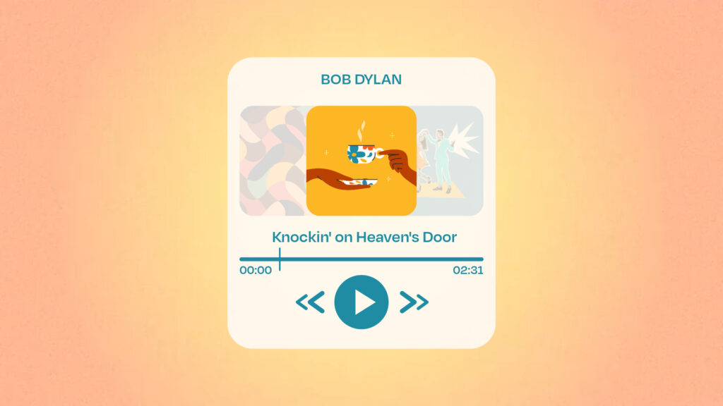 „Knockin’ on Heaven’s Door“ ist ein Lied von Bob Dylan, das ursprünglich für den Soundtrack des Films „Pat Garrett and Billy the Kid“ aus dem Jahr 1973 geschrieben wurde. Es handelt sich um eines der bekanntesten und am häufigsten gecoverten Lieder Dylans. Der Song hat eine einfache, aber eindrucksvolle musikalische Struktur und behandelt Themen wie Endlichkeit, Abschied und die Suche nach Frieden.