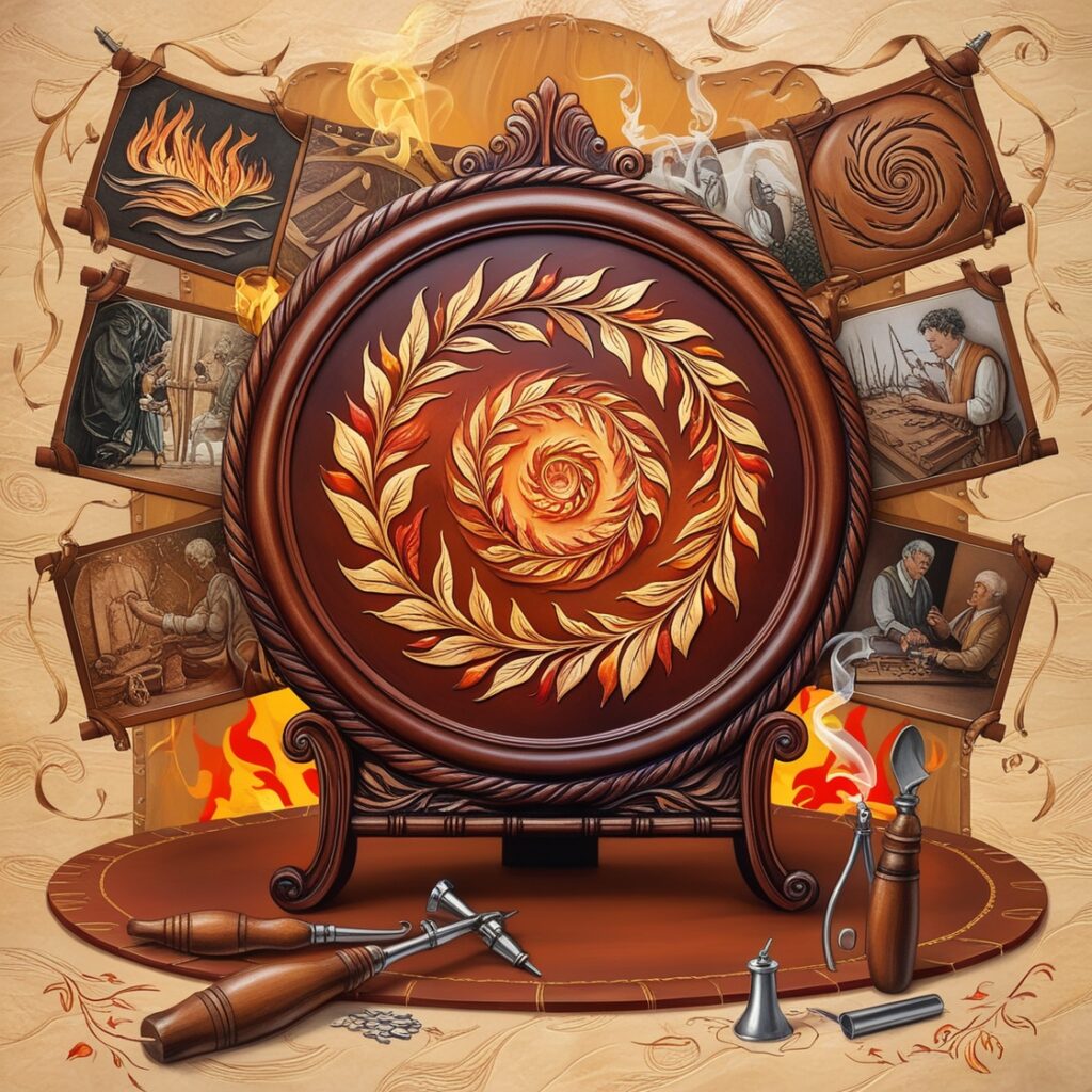 Brandmalerei, auch bekannt als Pyrographie, ist eine traditionsreiche Kunstform, die sich durch die Verwendung von Hitze zur Gestaltung von Oberflächen auszeichnet. Diese Technik ermöglicht es, detaillierte Muster, Bilder und Schriftzüge in Materialien wie Holz, Leder oder Kork einzubrennen. Der Begriff „Brandmalerei“ leitet sich aus den griechischen Wörtern „pyr“ (Feuer) und „graphos“ (Schreiben) ab, was wortwörtlich „mit Feuer schreiben“ bedeutet. Diese kunstvolle Methode vereint Technik, Kreativität und Handwerkskunst zu beeindruckenden Ergebnissen.
