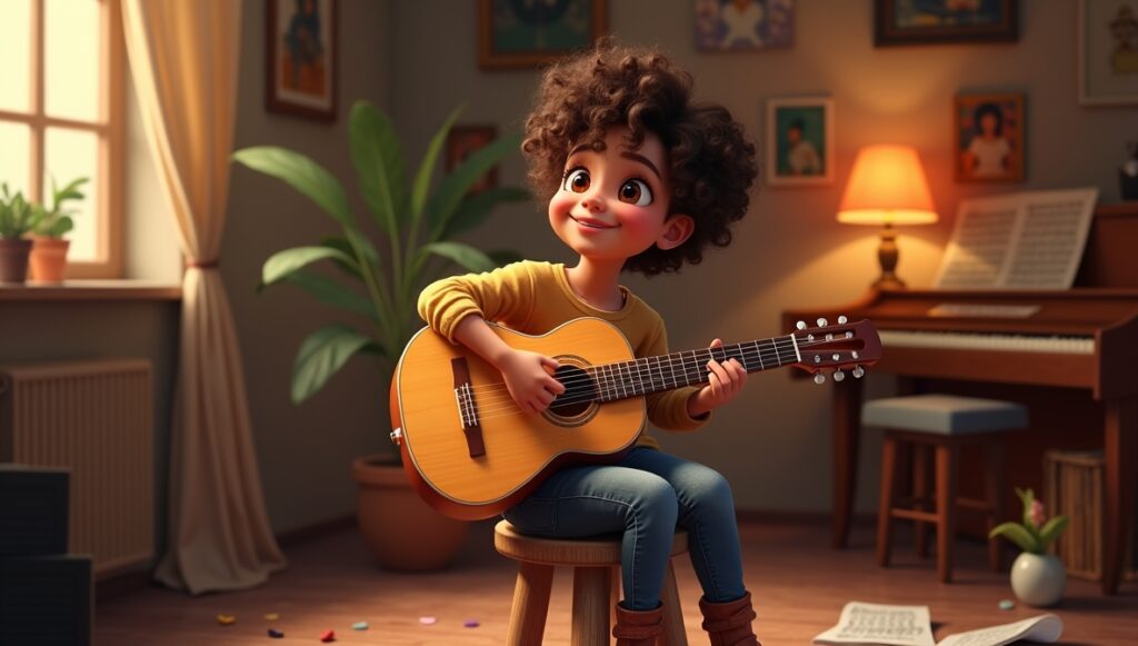 Ein siebenjähriges Mädchen beginnt im Rahmen eines Schulmusikprojekts, Gitarre zu spielen. Dank der spielerischen und kreativen Unterrichtsgestaltung kann sie nicht nur schnell erste Akkorde erlernen, sondern entwickelt auch ein starkes musikalisches Interesse. Ihre Eltern berichten, dass sich ihre Konzentrationsfähigkeit und ihr Selbstbewusstsein deutlich verbessert haben. In der Folge nimmt sie regelmäßig an Musik-AGs teil, die ihr helfen, die gelernten Fähigkeiten zu vertiefen.