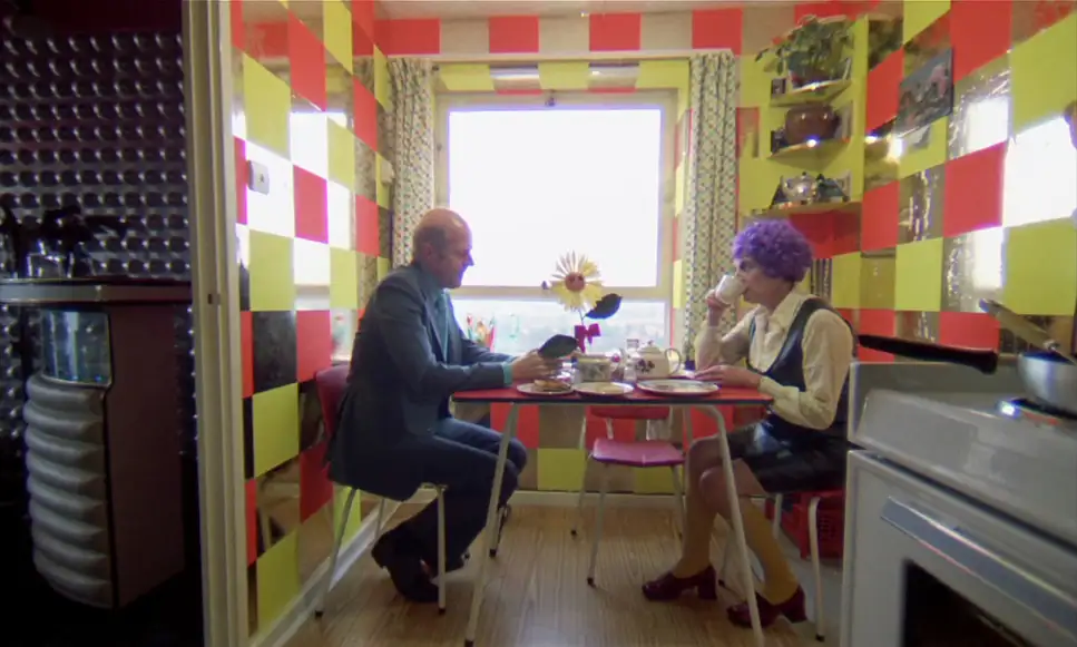 In A Clockwork Orange verwendet Kubrick Symmetrie, um die künstliche Ordnung einer dystopischen Gesellschaft darzustellen. Die Korova-Milchbar, mit ihren symmetrisch angeordneten Mannequins und der zentrierten Kameraführung, wirkt wie ein Tempel der Dekadenz. Doch diese Symmetrie steht in scharfem Kontrast zur Gewalt und Anarchie, die die Handlung prägen.